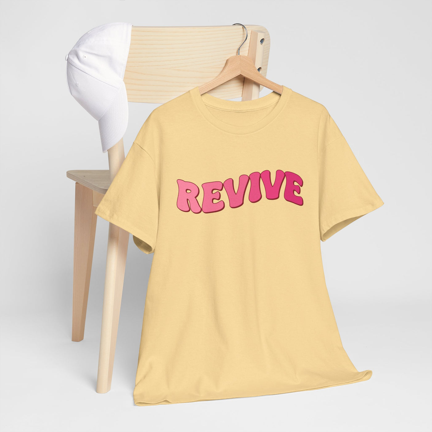 Elevate your casual wardrobe with this Unisex Heavy Cotton Tee. Featuring a vibrant "REVIVE" design, this tee embodies positivity and...